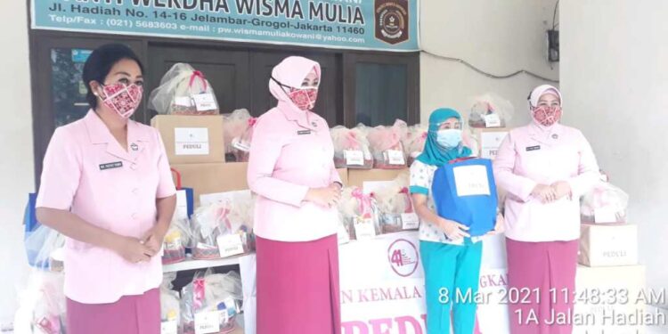 Dalam Rangka memperingati Hut Ke 41 Yayasan Kemala Bhayangkari, yayasan Kemala Bhayangkari Daerah Metro Jaya bersama pengurus yayasan kemala bhayangkari cabang metro Jakarta barat mengunjungi Panti Werdha Wisma Mulia yang berlokasi di Jelambar, Grogol Petamburan Jakarta Barat, Senin (08/03/2021).